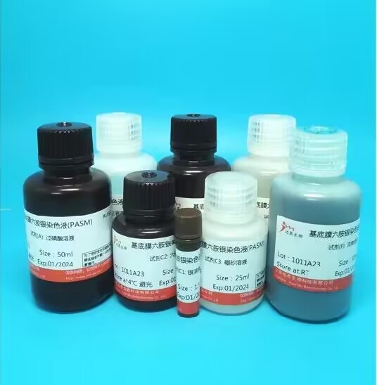 另外,銀染法也較常用。當(dāng)組織塊浸入硝酸銀溶液中時(shí),有的組織結(jié)構(gòu)能直接把硝酸銀還原,使銀粒附于其上,呈棕黑色或棕黃色。有些結(jié)構(gòu)本身對(duì)硝酸銀無直接還原能力,若加入還原劑,可使硝酸銀還原沉淀顯色。