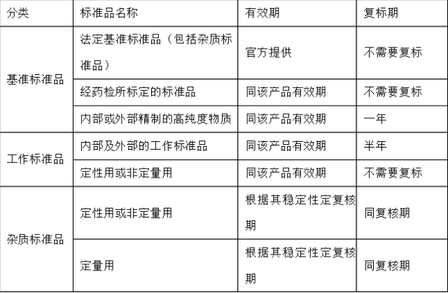 標準品有效期(失效期)與復標期