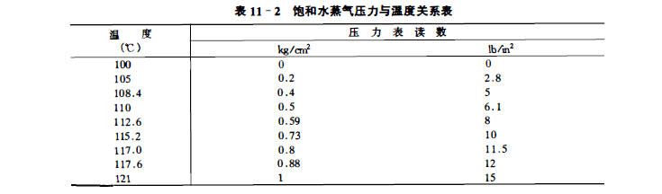 (1)高壓蒸氣滅菌在高壓蒸氣滅菌器中進(jìn)行,利用提高蒸氣壓力而使溫度增高的作用,因而提高了蒸氣滅菌效力。蒸氣壓力和溫度關(guān)系見表11-2。
