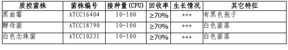 按標簽用法制備培養基,接種以下質控菌株,放置25℃需氧培養120小時。