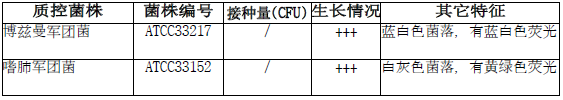 按標簽用法制備培養基,接種以下質控菌株,放置36±1℃需氧培養72-168小時。