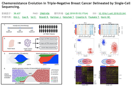 研究目的:利用單核RNA測序(snRNA- seq)和單細胞DNA測序研究三陰乳腺癌的耐藥性是由選擇罕見的現有克隆引起的,還是通過獲得新的基因組畸變引起的