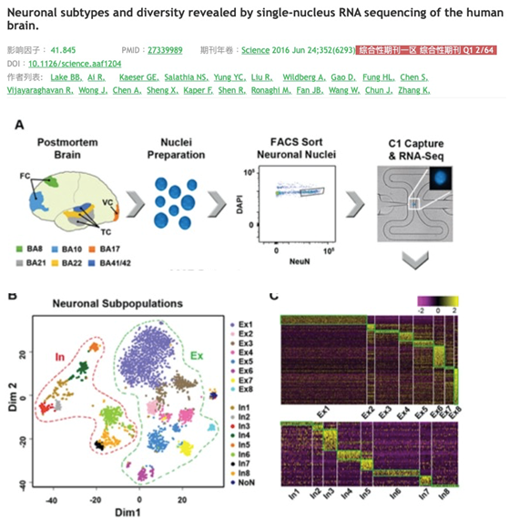 研究目的:利用單核RNA測序(snRNA- seq)揭示人大腦組織的單細胞轉錄組圖譜