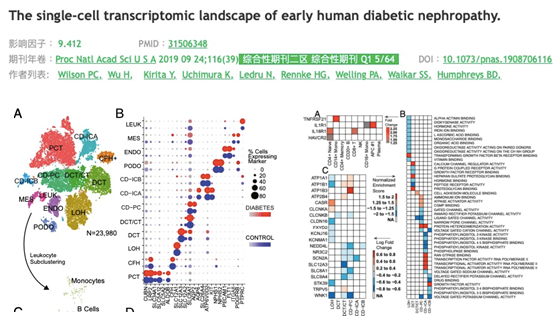 研究目的:通過單核RNA測序(snRNA- seq)揭示糖尿病腎病對腎小球和腎小管間質的損害過程中,伴隨的細胞特異性基因表達的變化