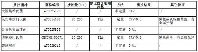 按標簽用法制備培養基,接種以下質控菌株,放置36±1℃需氧培養40-48小時。