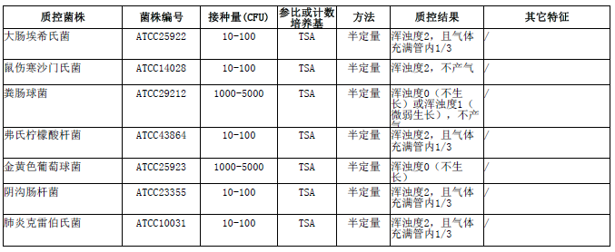 按標(biāo)簽用法制備培養(yǎng)基,接種以下質(zhì)控菌株,放置36±1℃需氧培養(yǎng)24-48小時(shí)。
