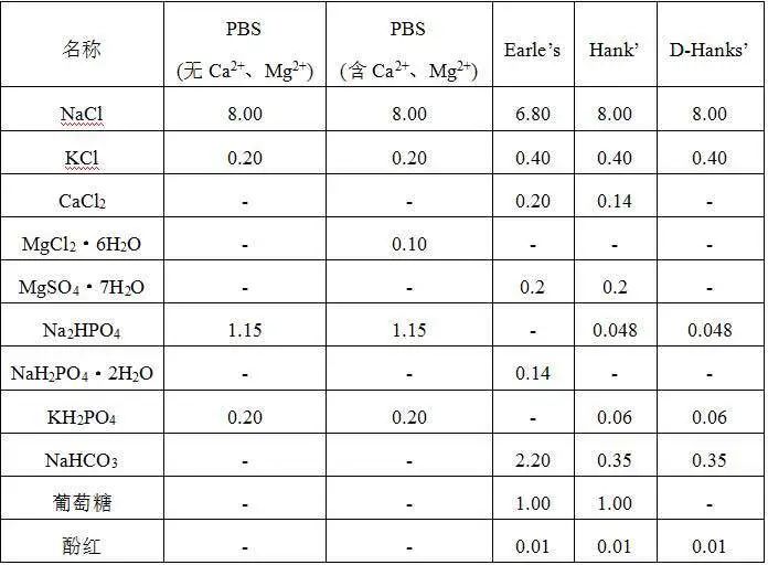 D-Hank's與Hank's的一個主要區別是前者不含有Ca2+和Mg2+,因此D-Hank's常用于配制胰酶溶液。因為Ca2+、Mg2+是細胞膜的重要組成成份,參與細胞粘附等功能,使用不含Ca2+、Mg2+的BSS可避免細胞結團。此外,Hanks液和Earle液是常用的BSS基礎溶液,前者緩沖能力較弱,適合于密閉培養;后者緩沖能力較強,適合于5% CO2的培養條件。