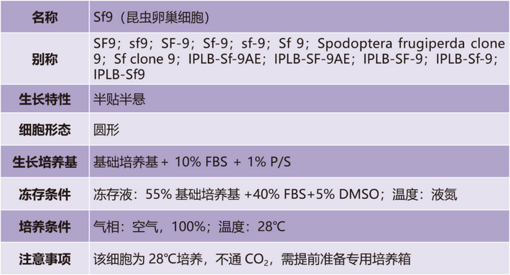 該細胞多用于真核細胞蛋白表達系統,因此針對該細胞有諸多培養體系,例如Grace's Insect Medium、SF900 II、TNM-FH、ESF921等培養體系,包括含血清的培養體系和不含血清的培養體系,可以根據自身實驗需要選擇逐步更換為合適的培養體系。